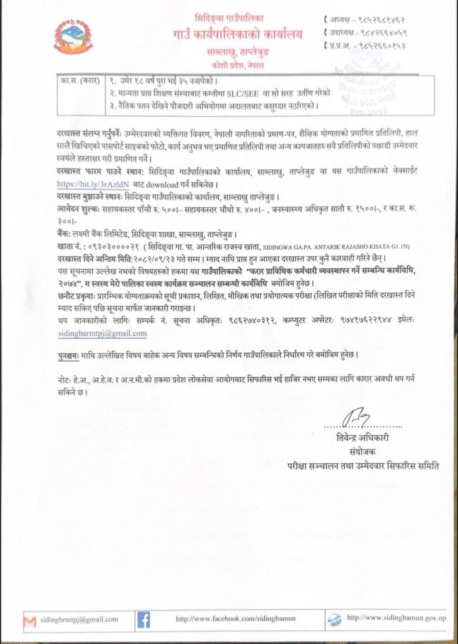 करारमा पदपूर्ति गर्ने सम्बन्धि सूचना ( दोस्रो पटक प्रकाशित )