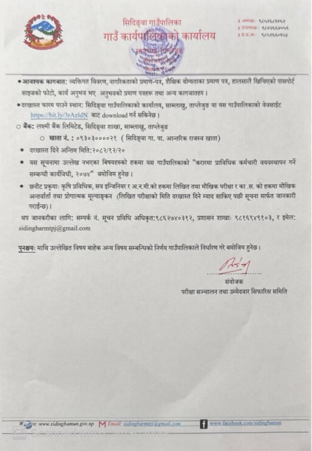 करारमा पदपूर्ति गर्ने सम्बन्धि सूचना ( दोस्रो पटक प्रकाशित )