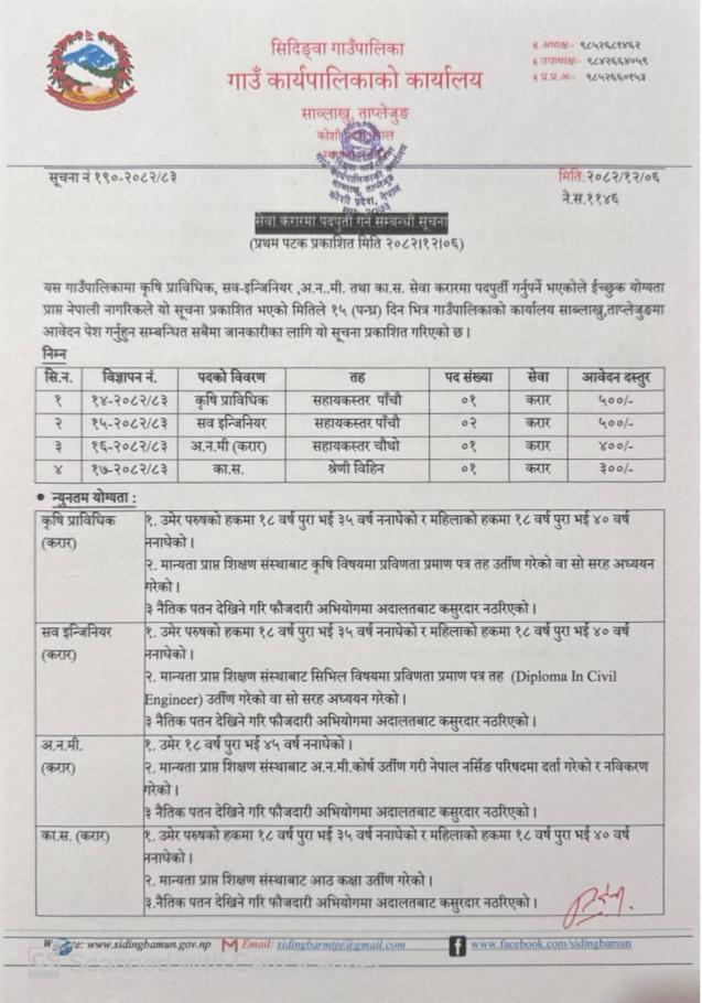 करार सेवामा पदपूर्ती गर्ने सम्बन्धी सूचना