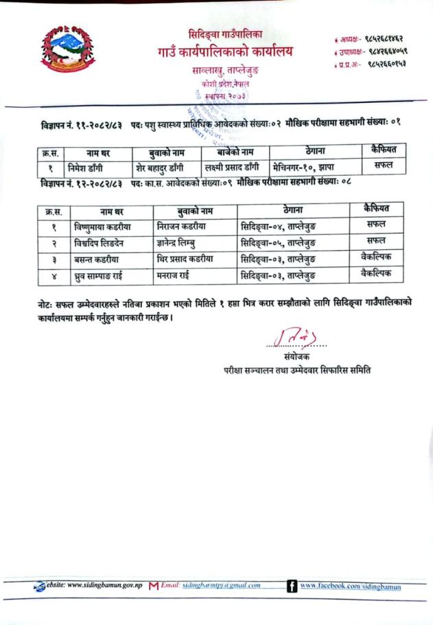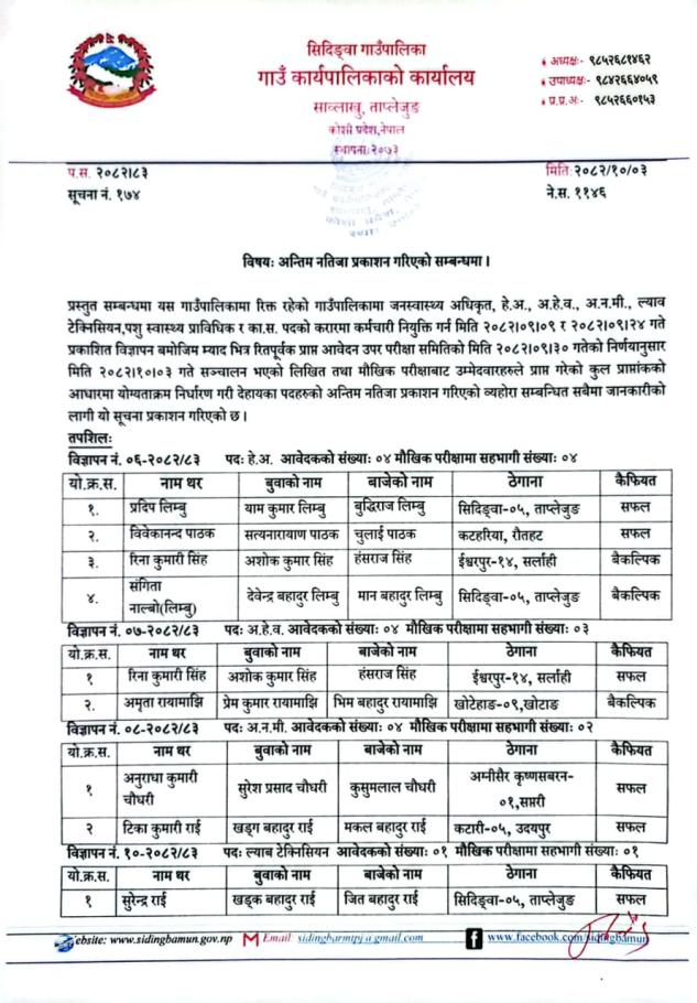 अन्तिम नतिजा प्रकाशन गरिएको सम्बन्धमा ।।