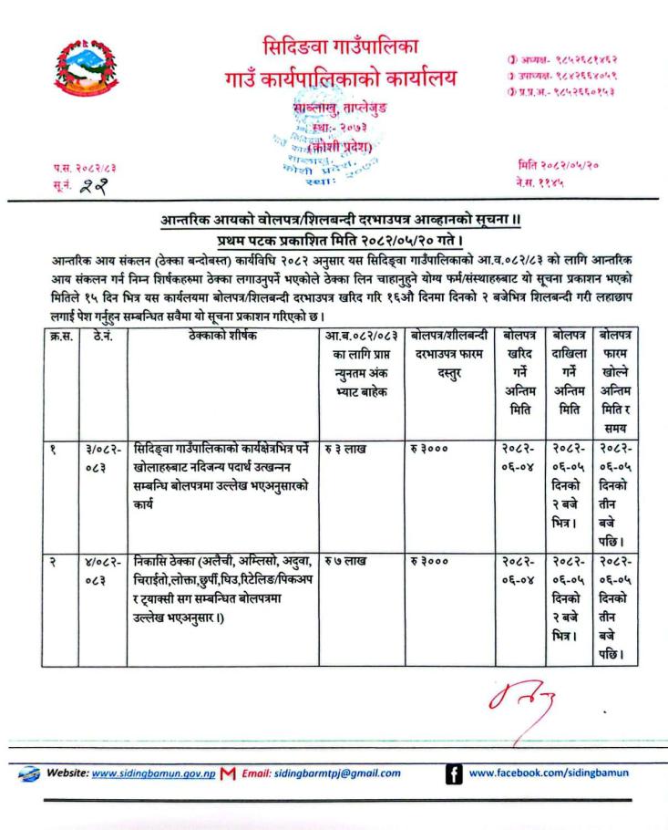 सिदिङ्वा गाउँपालिकाको आर्थिक बर्ष २०८२/०८३ को रातो किताब