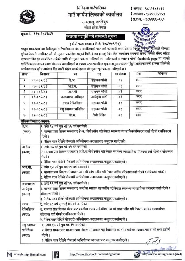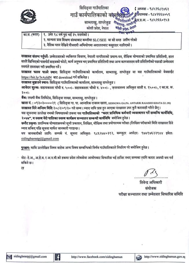 करारमा पदपूर्ति गर्ने सम्बन्धि सूचना ( दोस्रो पटक प्रकाशित )